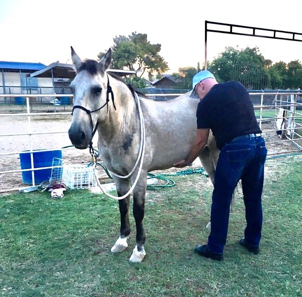 At the farm sharing Reiki with Wild Bill. Animals, like people, love Reiki! Carefree AZ 2020