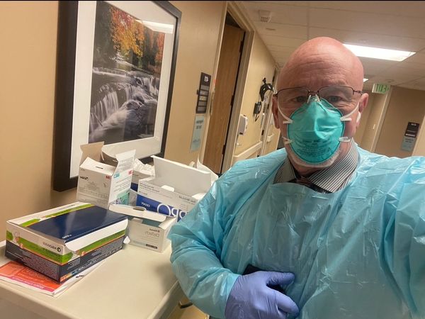 Suited up at Banner Heart Hospital to enter the room of a covid patient who requested a Reiki treatment. Mesa AZ 2022