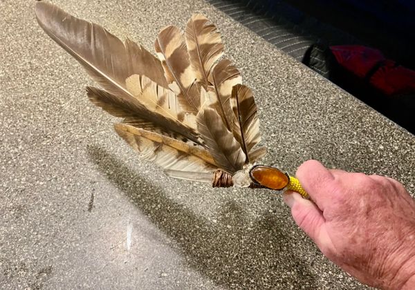 The Prayer or smudge fan is a shamanic tool is used to focus energy, rid a patient’s aura of attachments and to spread sage smoke. I use it during every healing session & every House Blessing.
